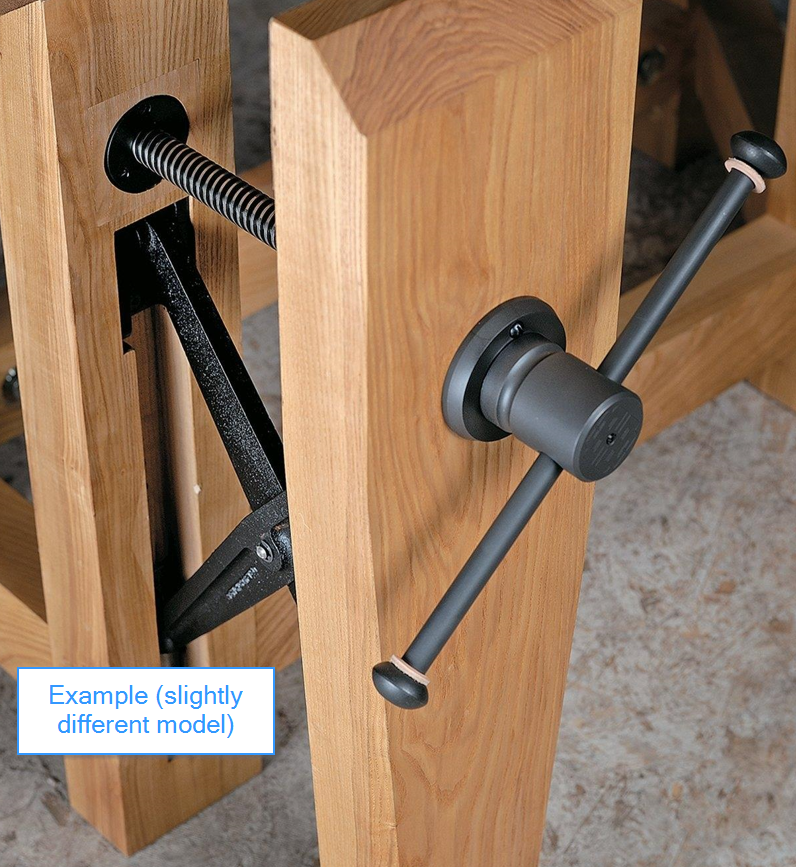 Bench leg vise hardware kit. This kit is used to build vertical leg vises to the leg of table for clamping materials / supporting work pieces.
