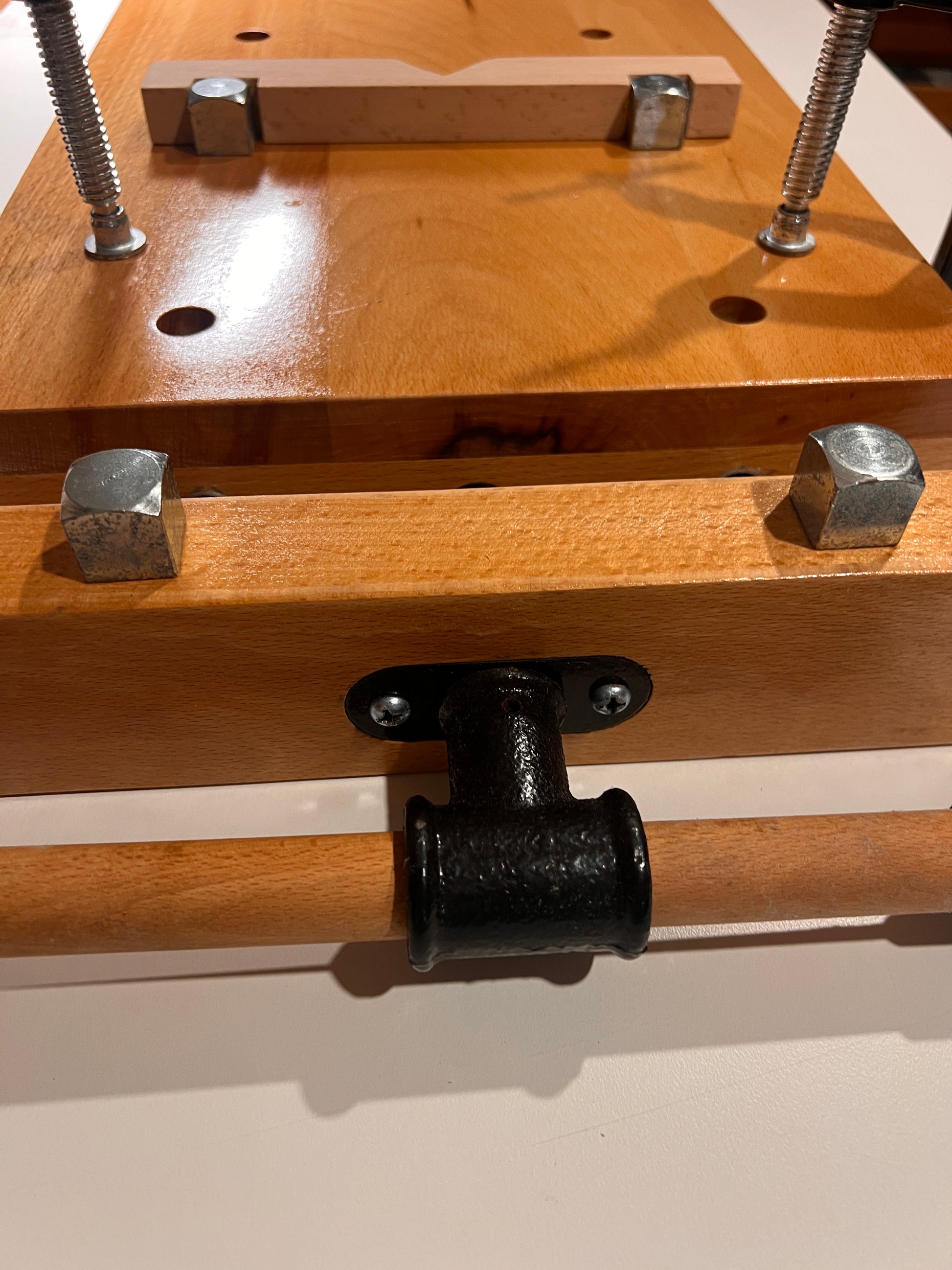 - Cast iron side mount under bench clamp.