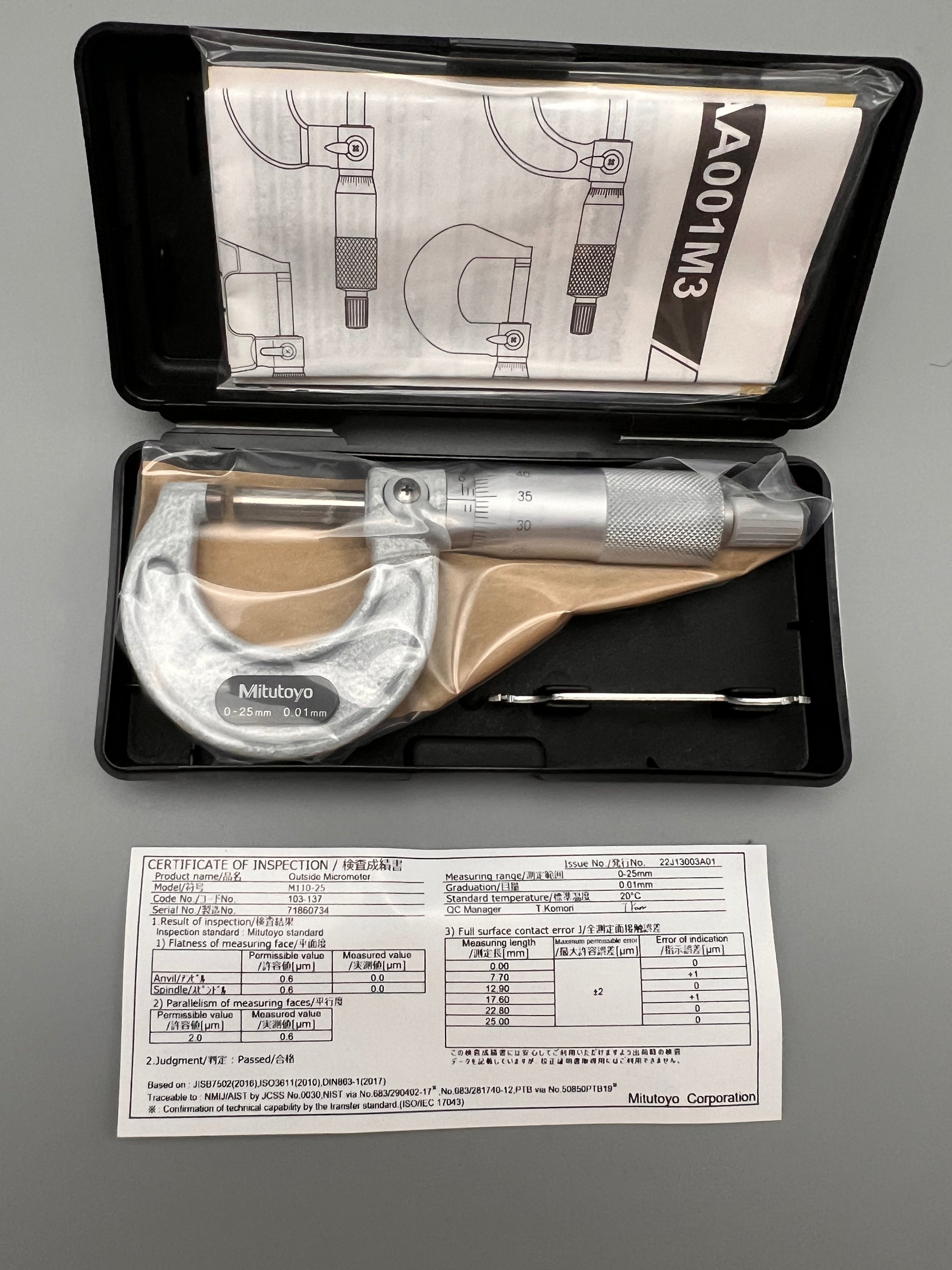 Mitutoyo Outside Micrometer - 0-25mm x 0.01mm