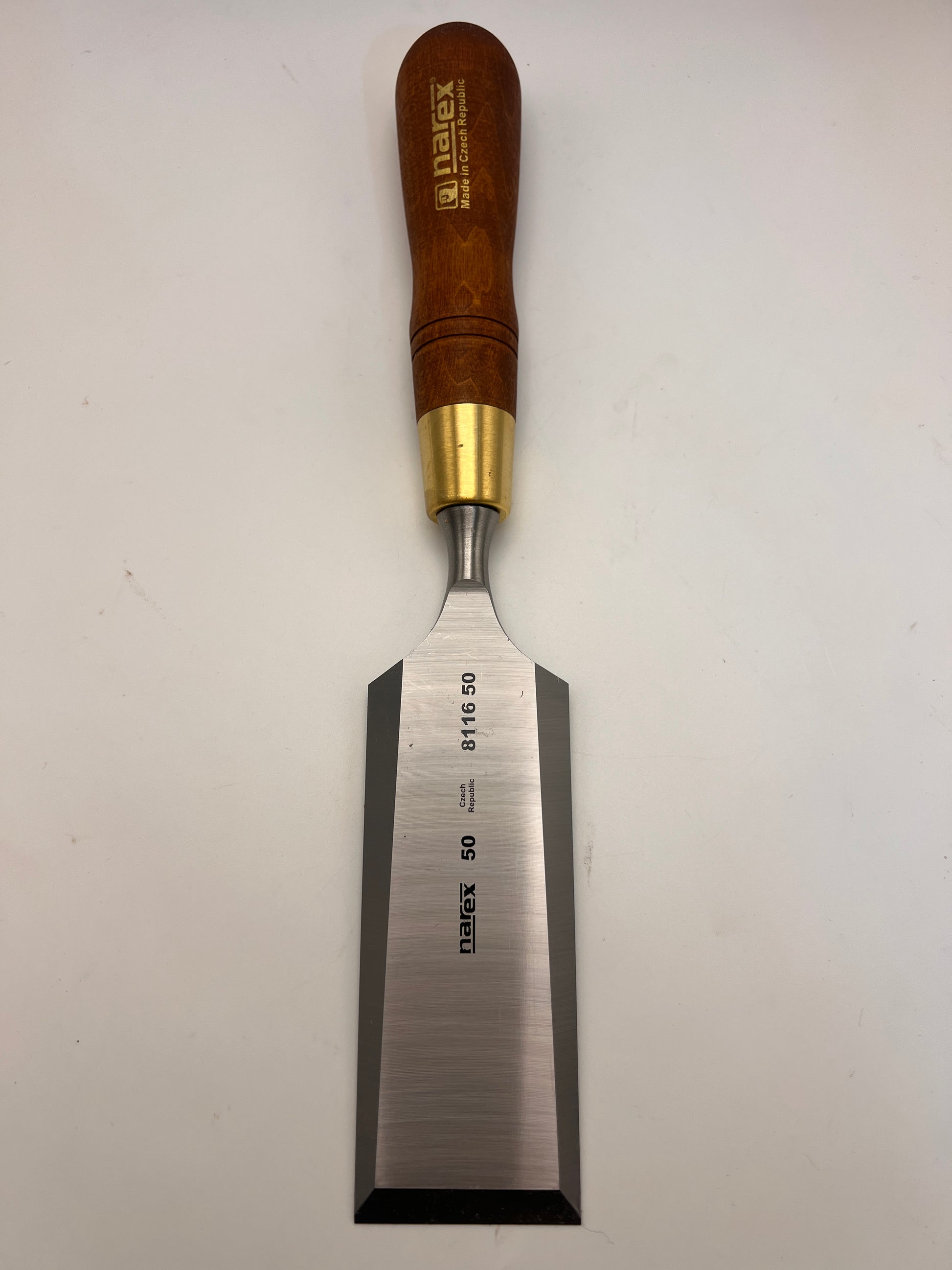 Innovative chisel with improved cross-section of the blade that minimises friction when cutting into wood. Improved grinding of the edges creates especially thin sides which are in particular needed in dovetailing.
