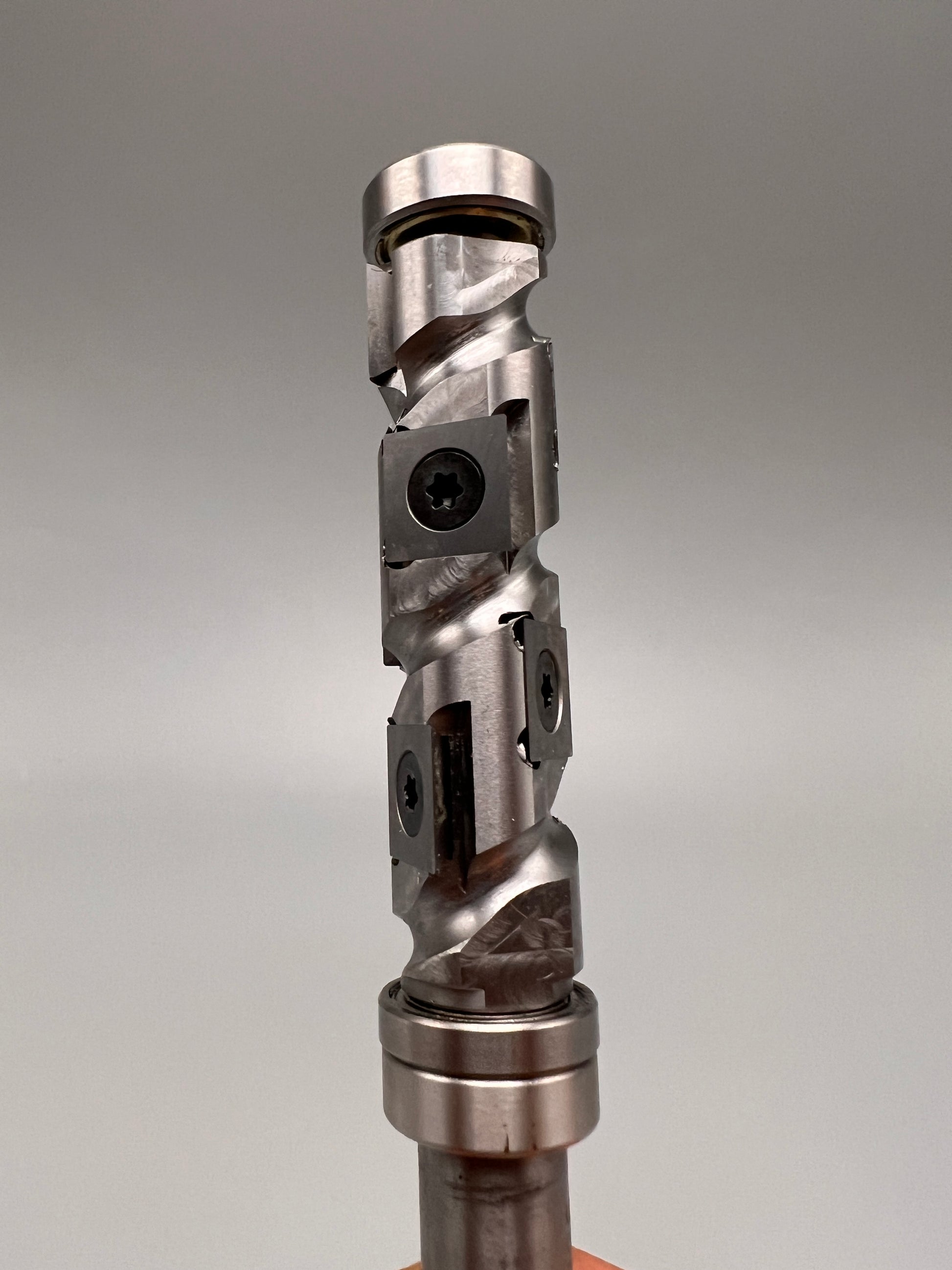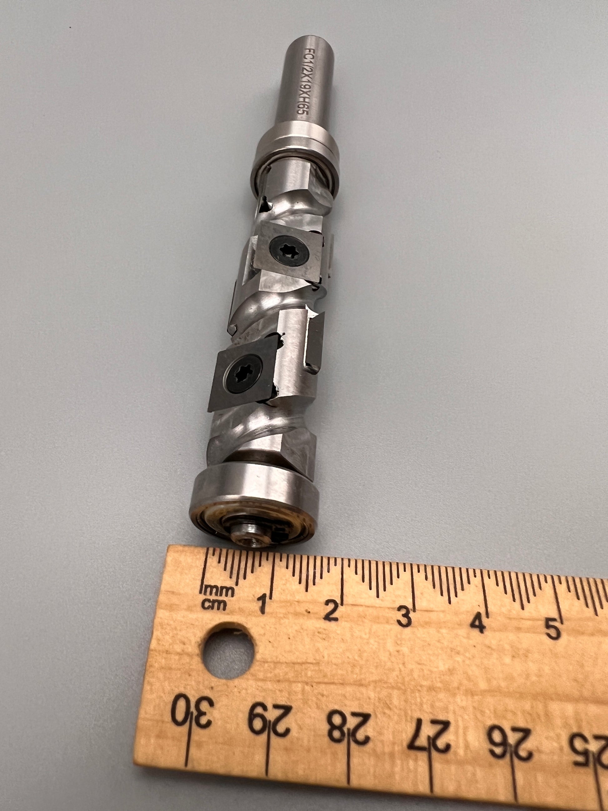 This bit uses a helical cutter head, for every rotation the cutter contacts the surface at 7 different points in the rotation cycle using significantly less power, producing less noise and less wear and tear on your machine. These bits are replaceable too reducing overall long term costs.
